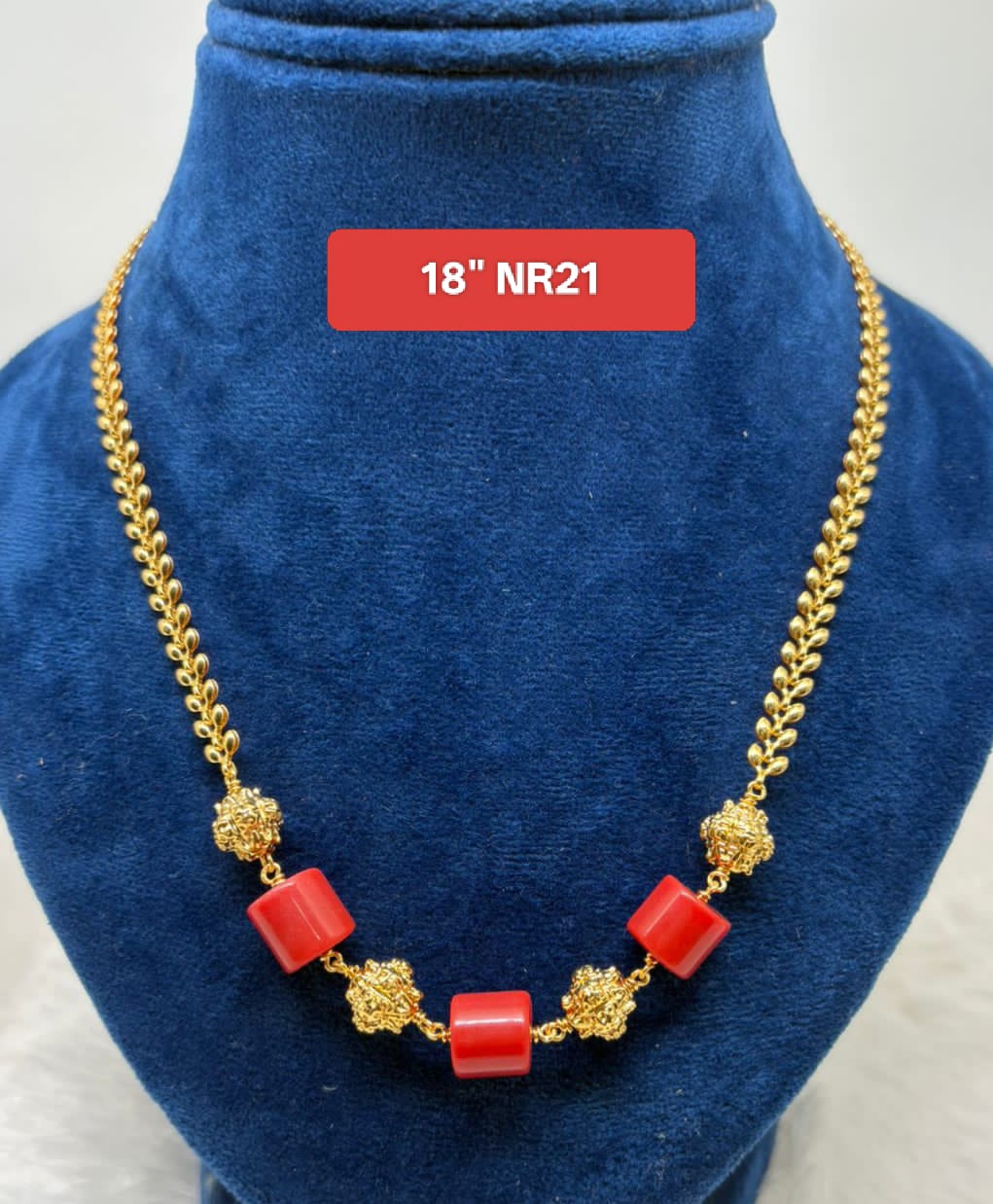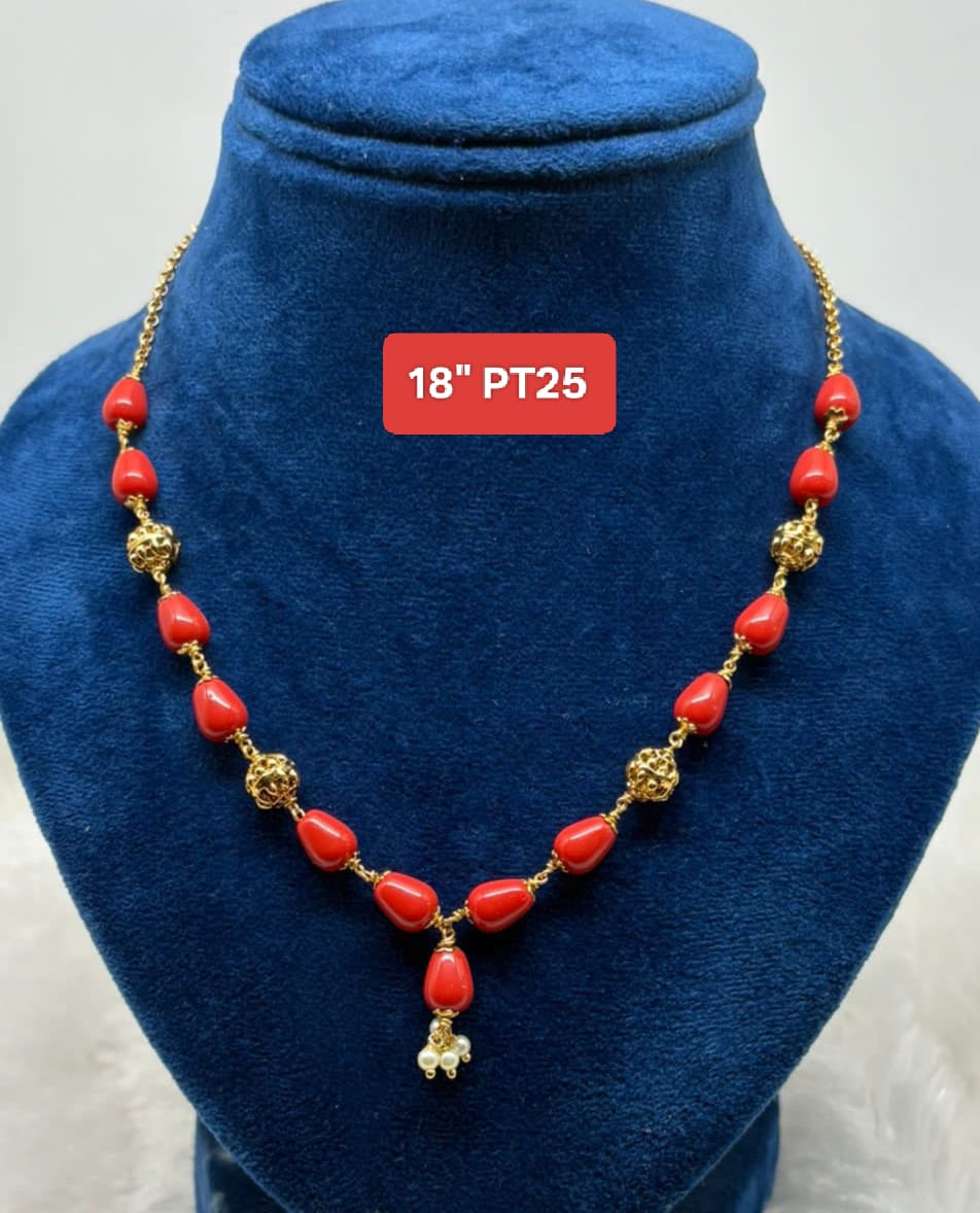 Premium quality one gram 18” Coral beads with nakshi ball chain