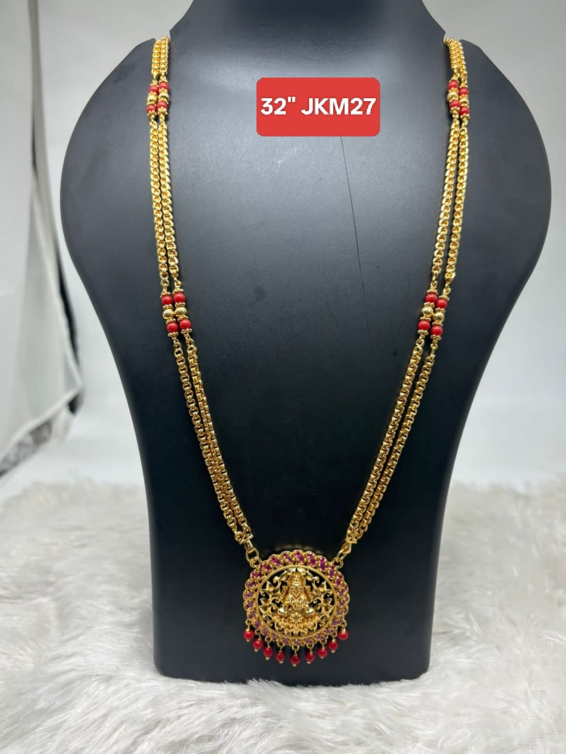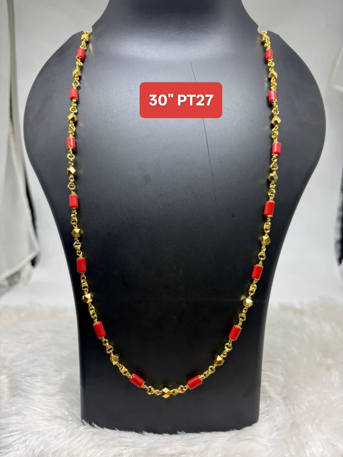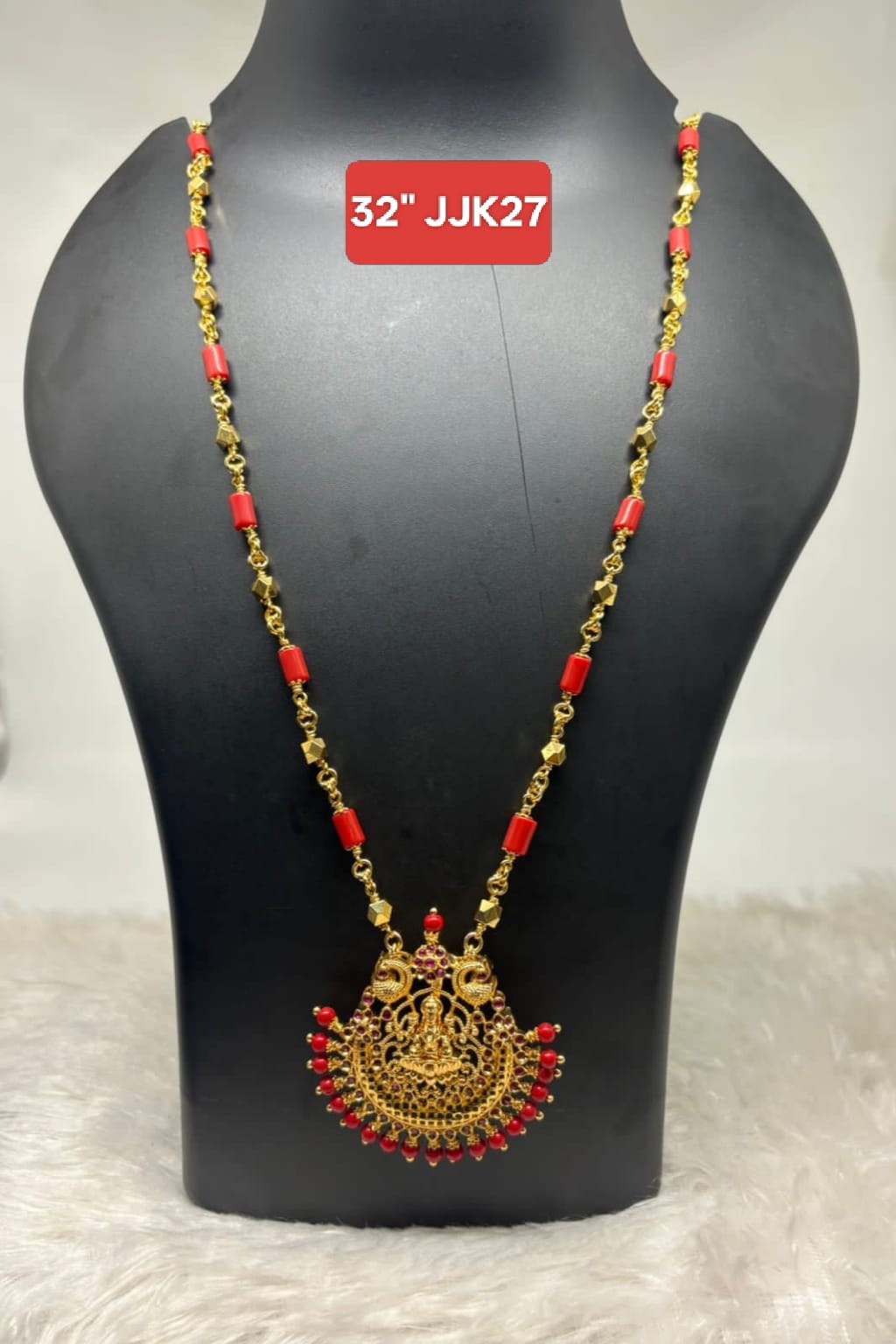 Premium quality one gram 32 inch Coral chain with Big laxmi pendent
