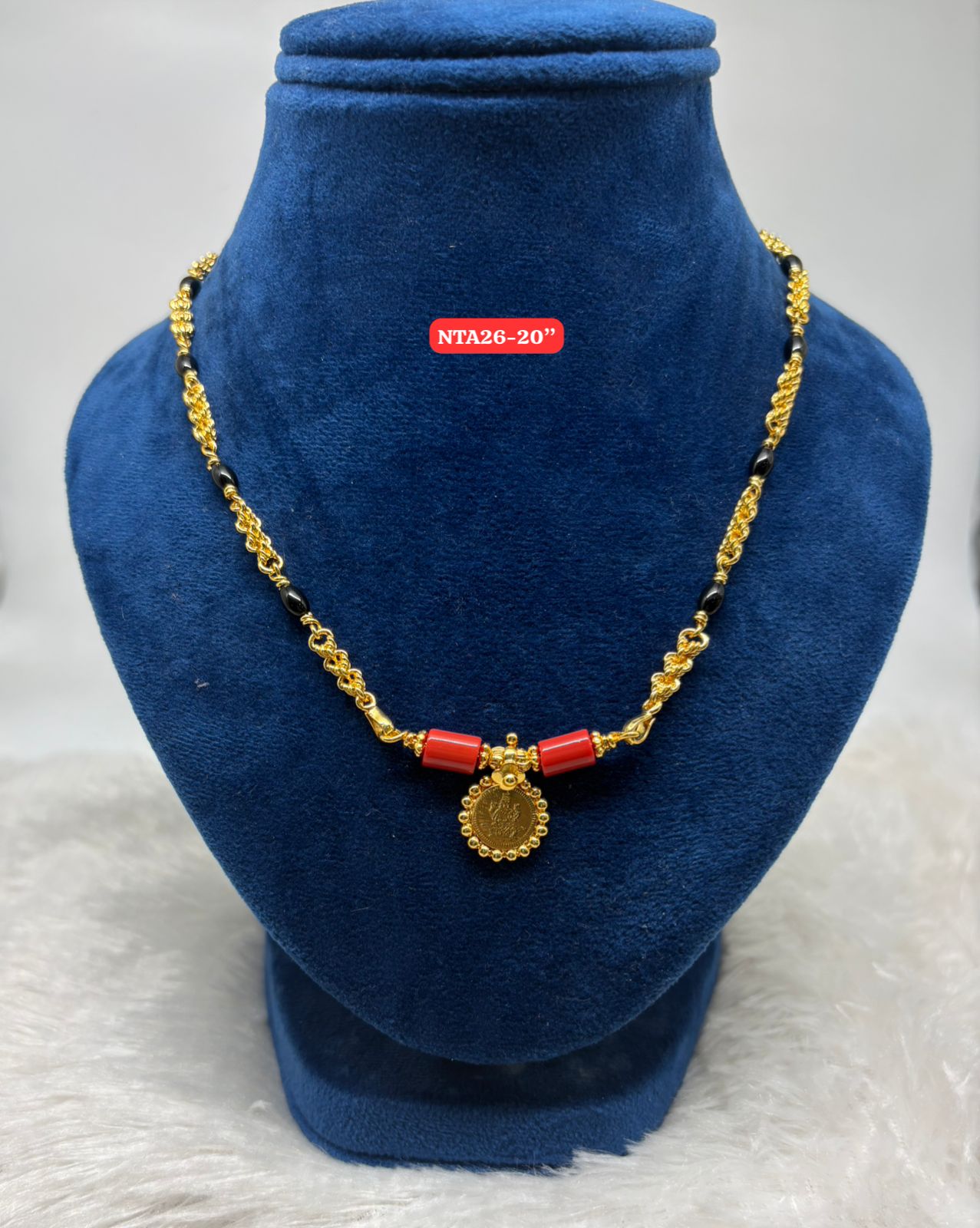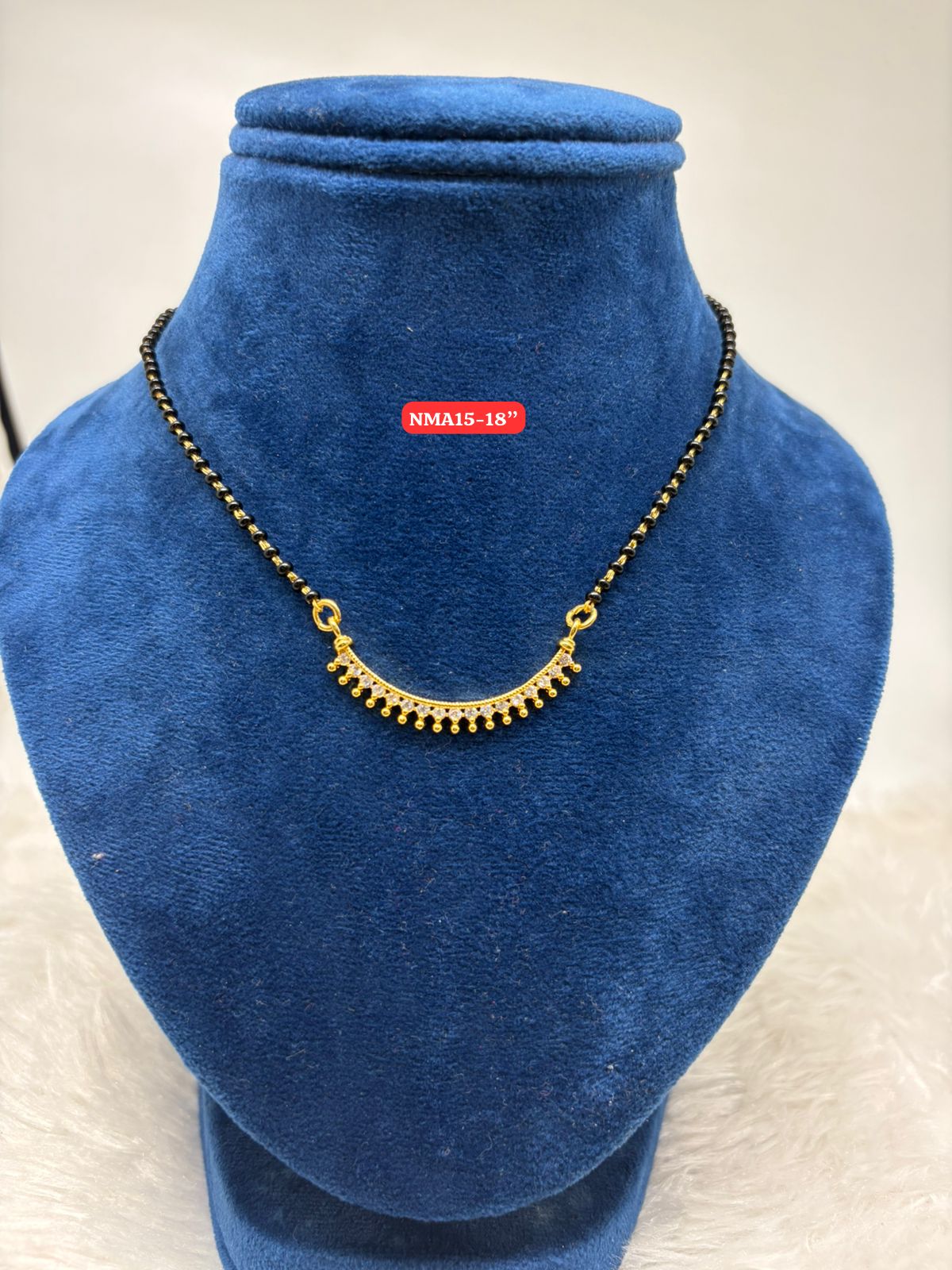 Premium quality One gram gold 18 inch black beads karimani with stone pendent