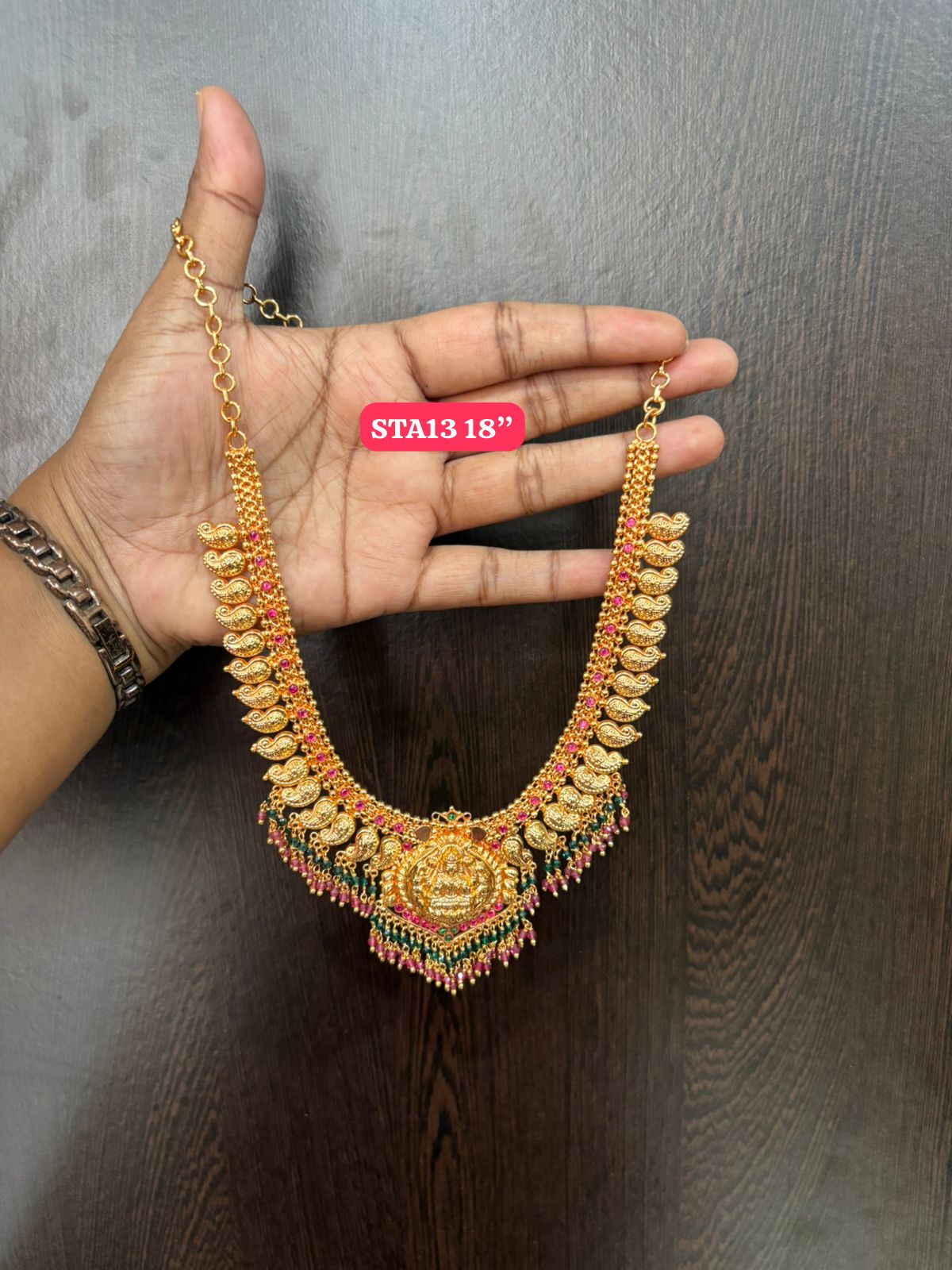 Premium quality One gram gold 18 inch laxmi necklace