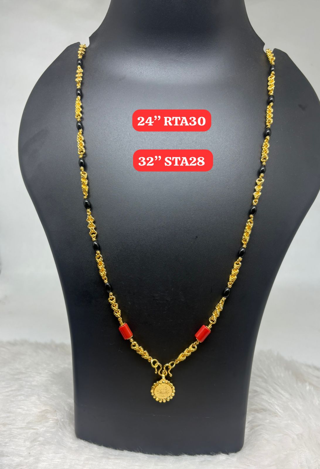 Premium quality One gram gold 24 inch black beads karimani with laxmi thali
