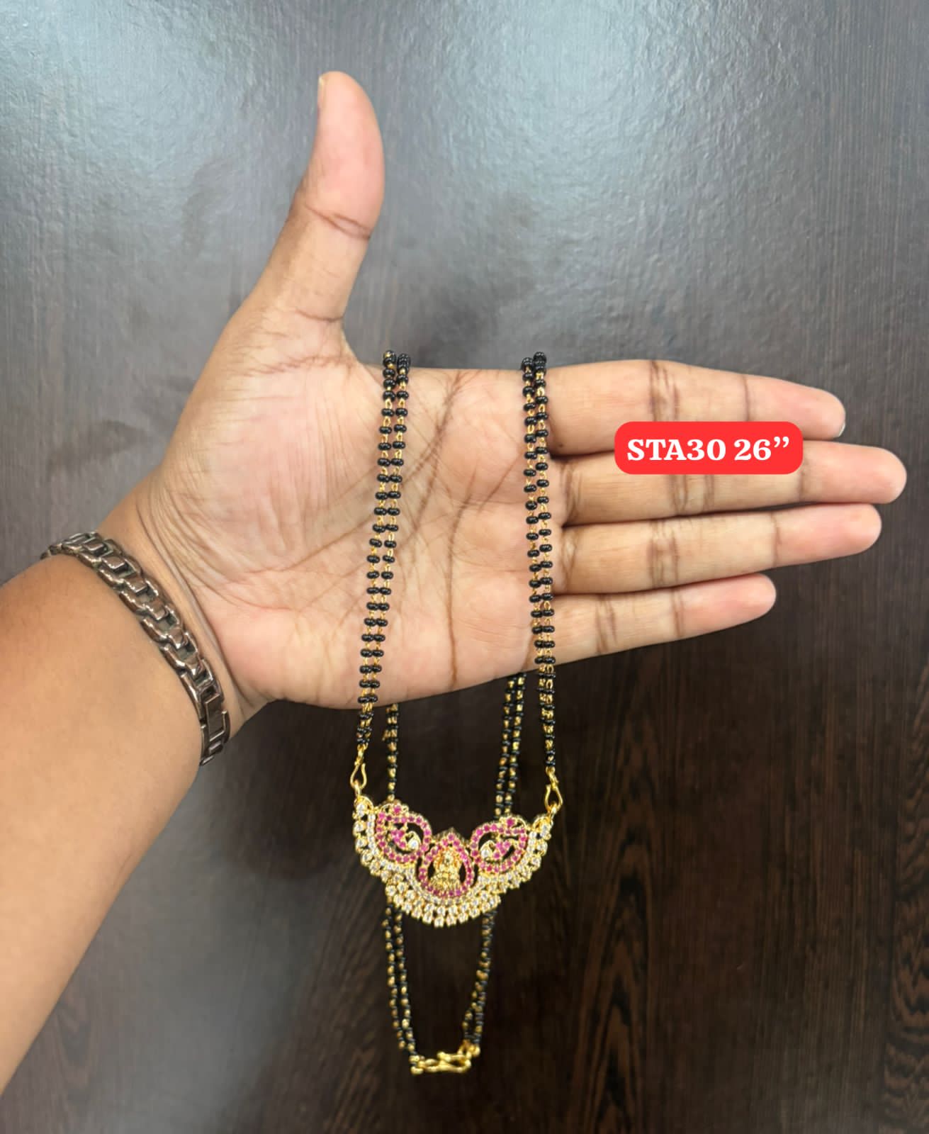Premium quality One gram gold 24 inch black beads karimani with stone pendent