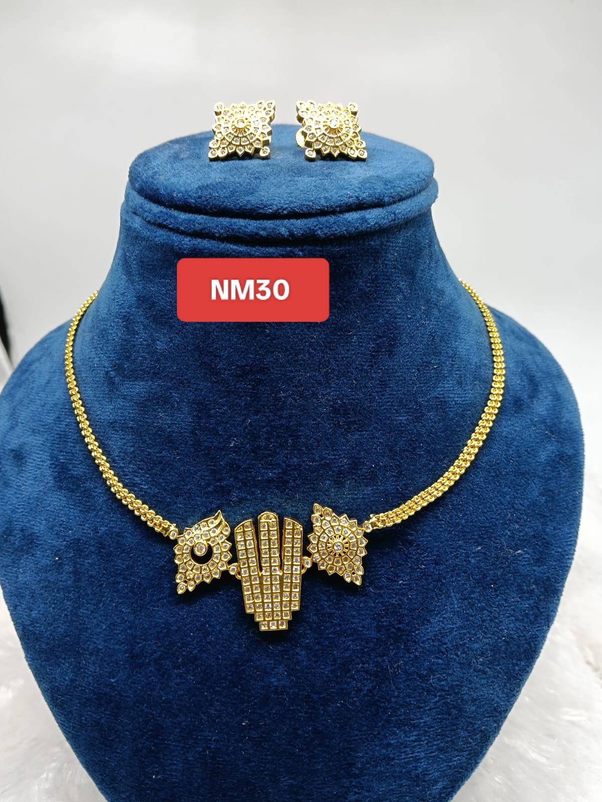 Premium quality one gram gold 24 inch Gandaberunda necklace with stud