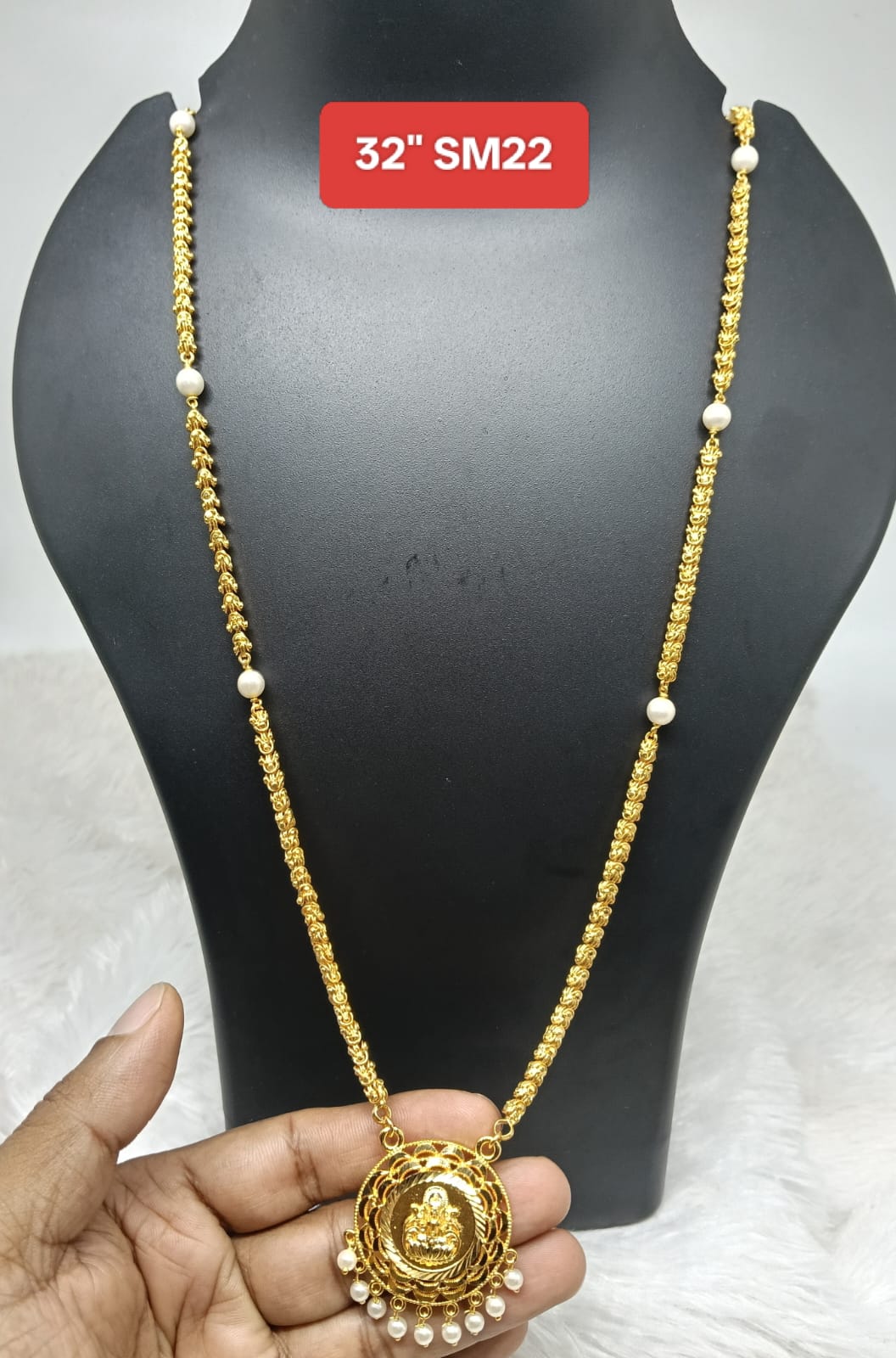 Premium quality One gram gold 24″ Pearl chain with laxmi pendent