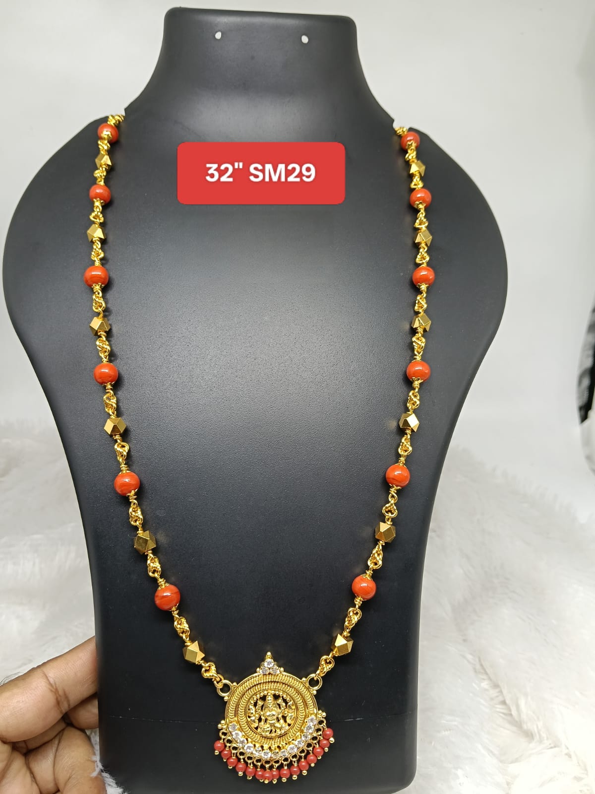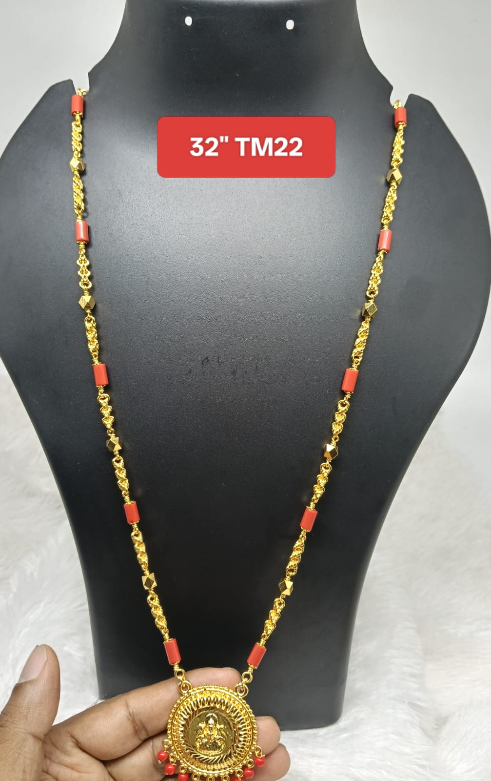 Premium quality One gram gold 32″ Coral chain with laxmi pendent