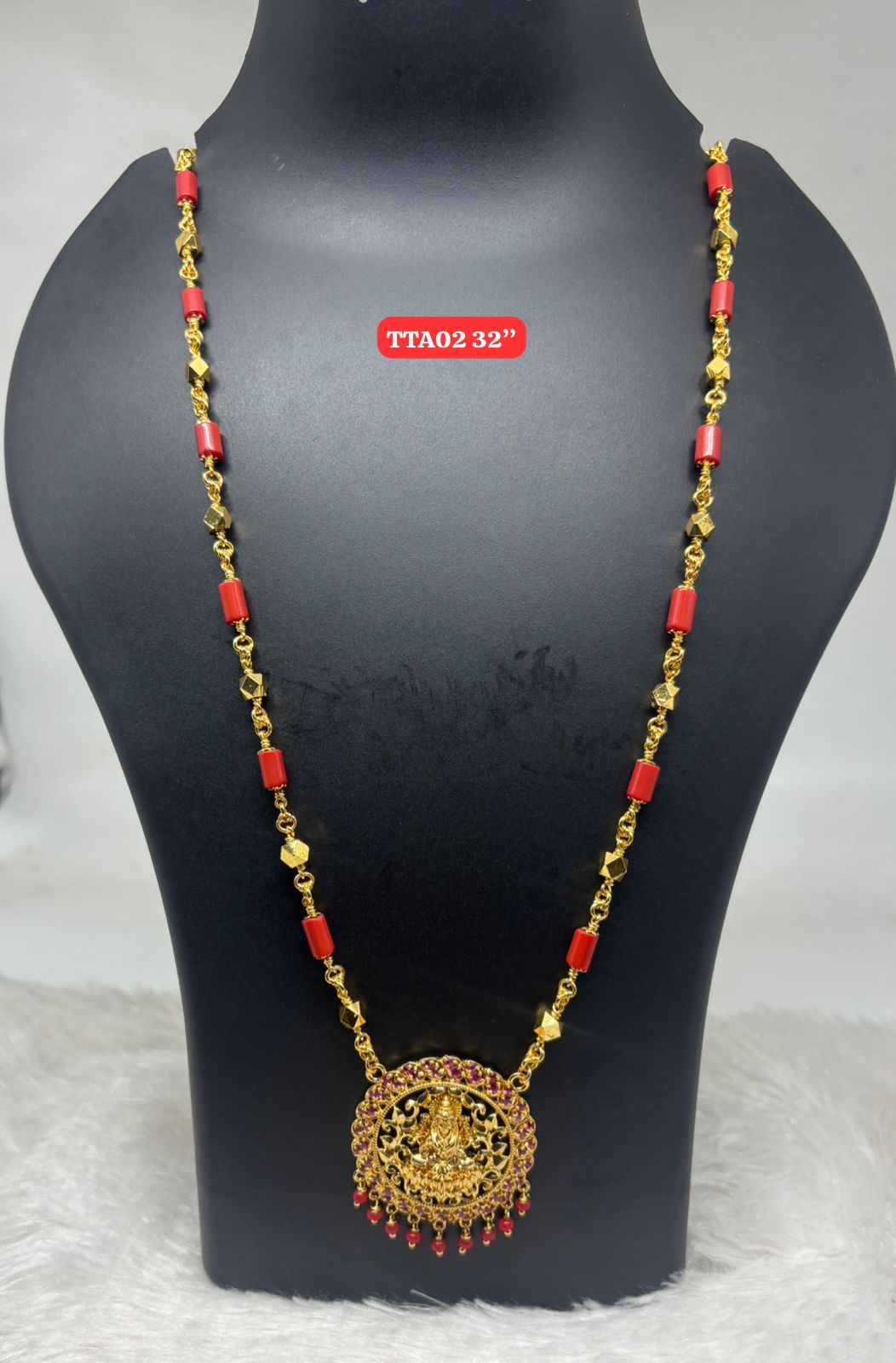 Premium quality One gram gold 32 inch Coral chain with laxmi pendent