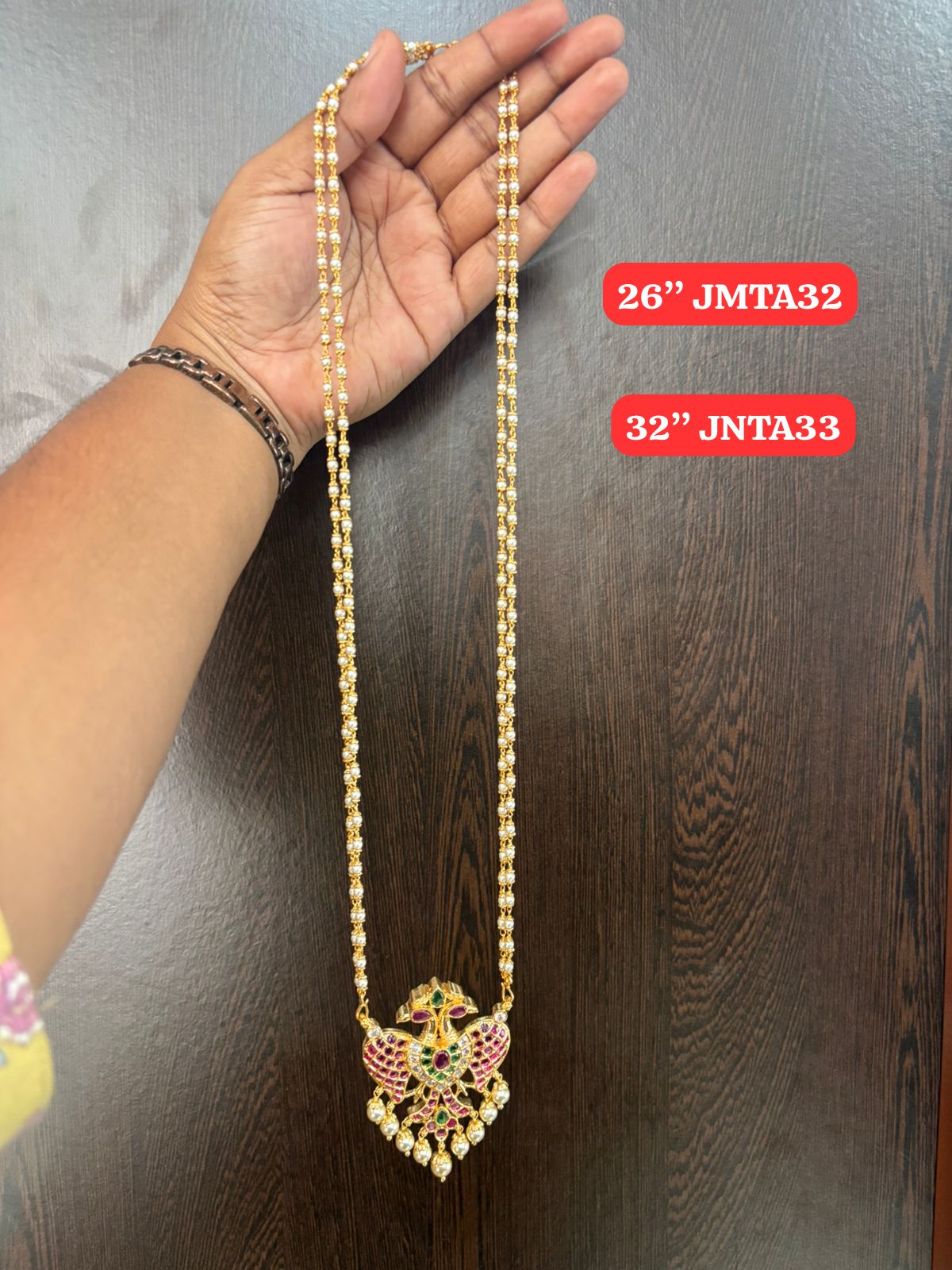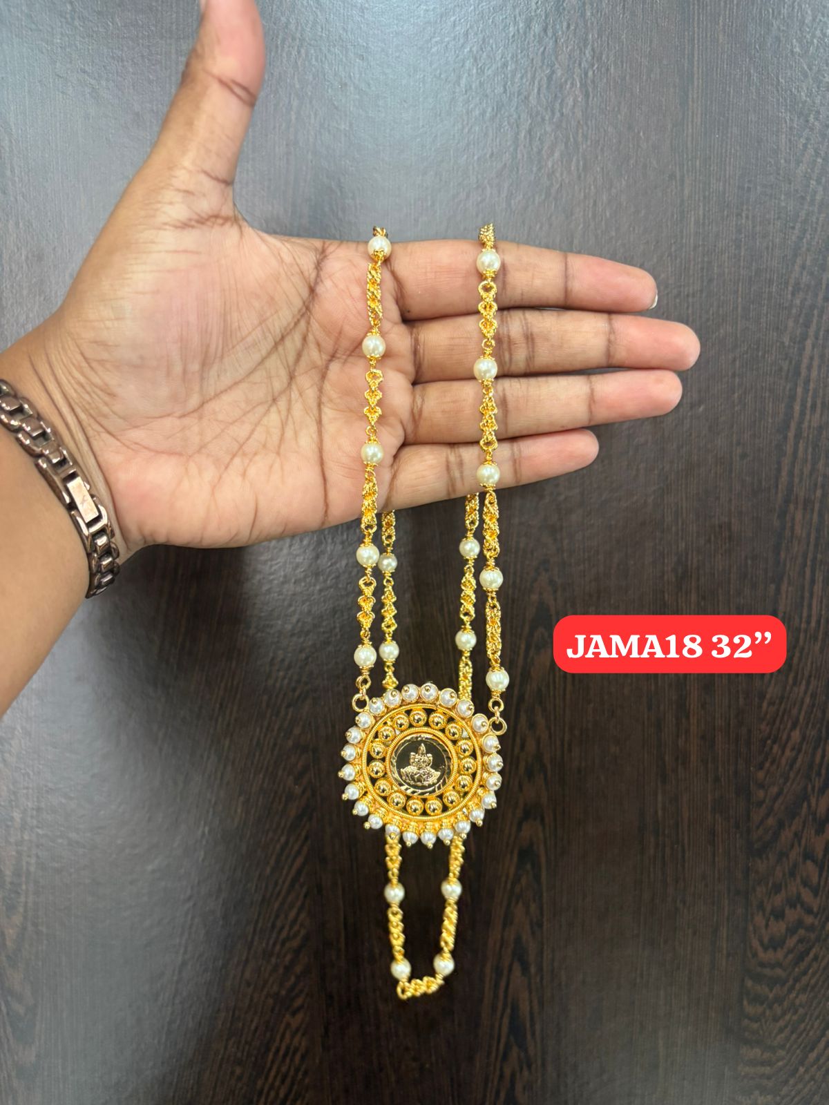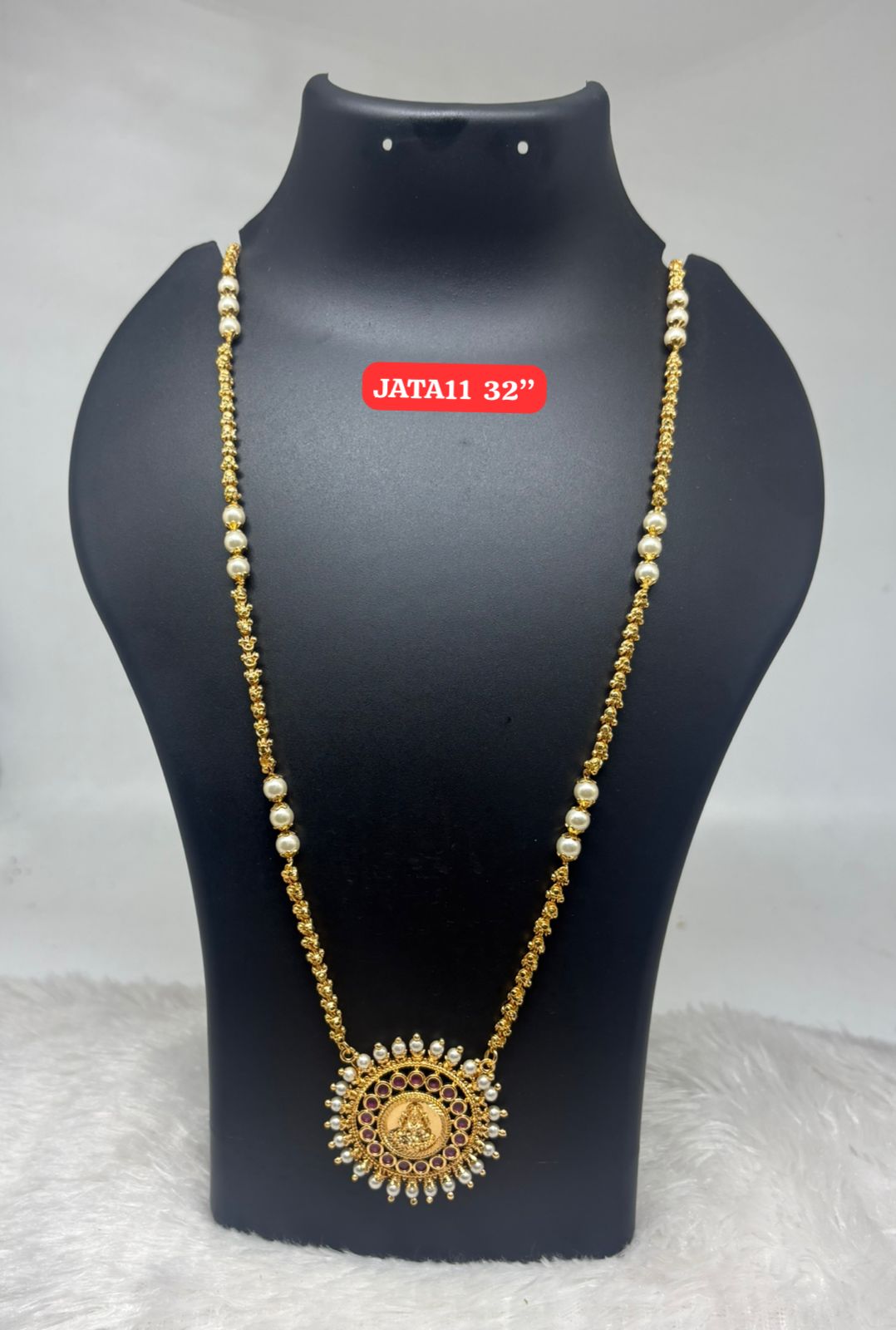 Be the first to review “Premium quality One gram gold 32 inch dashavathara pearl chain with laxmi pendent”
