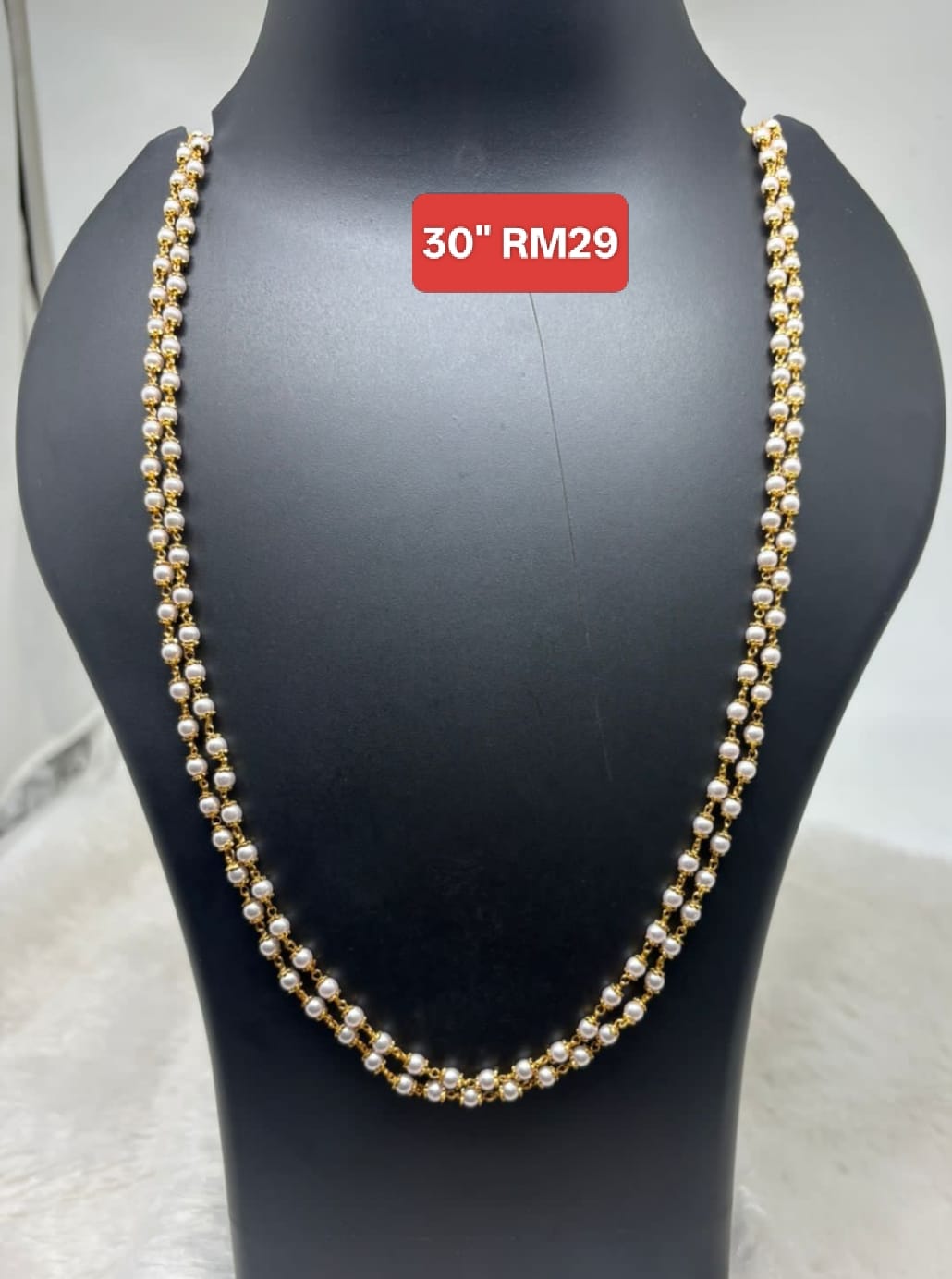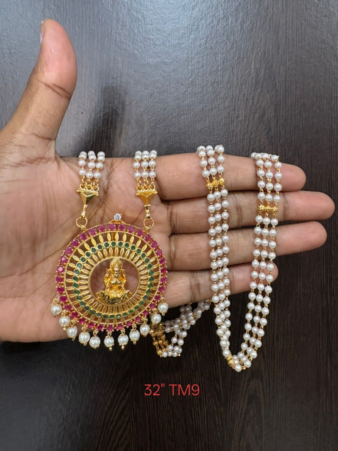 Premium quality One gram gold 32 inch pearl chain with Laxmi pendent