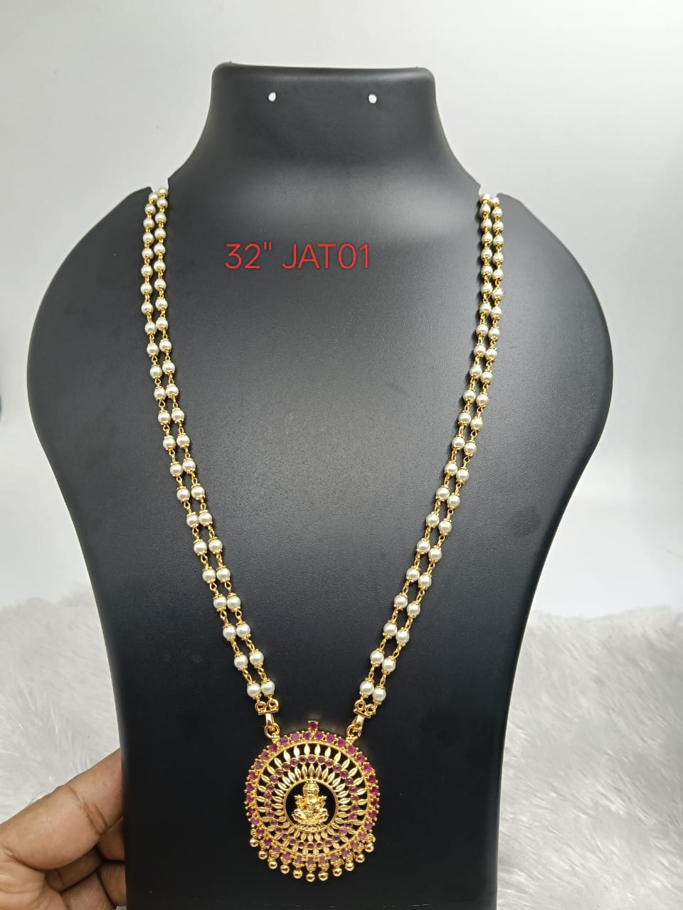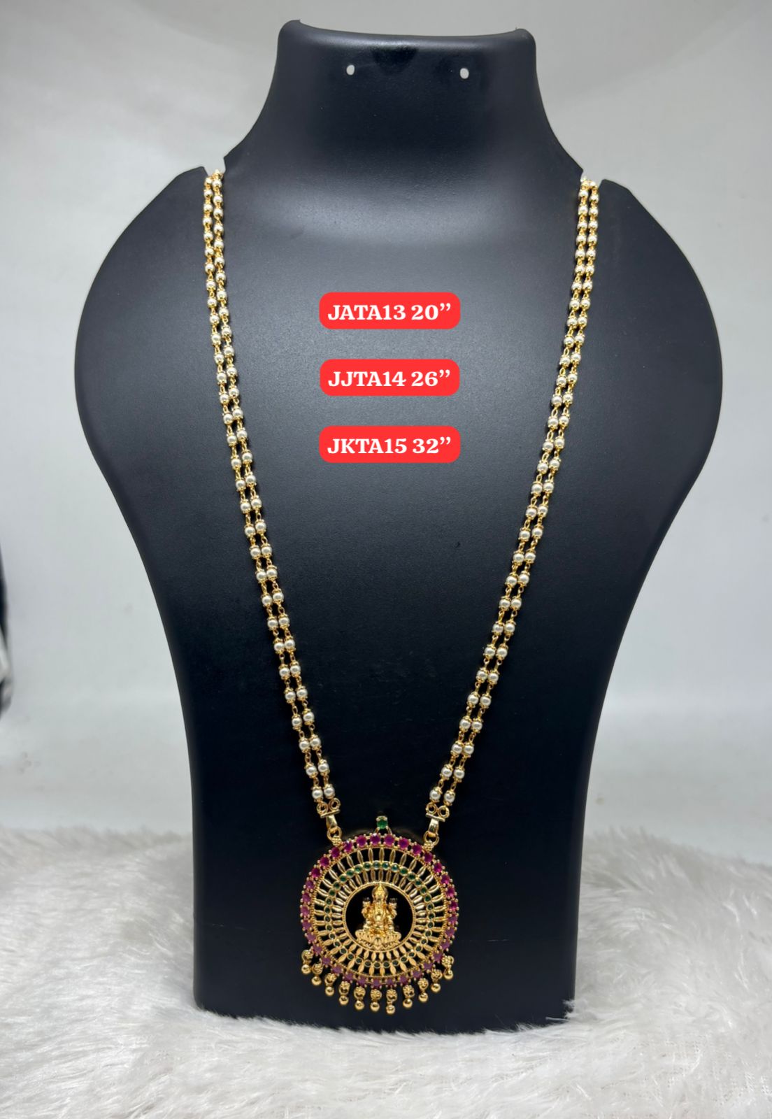 Premium quality one gram gold 32” Pearl chain with laxmi pendent