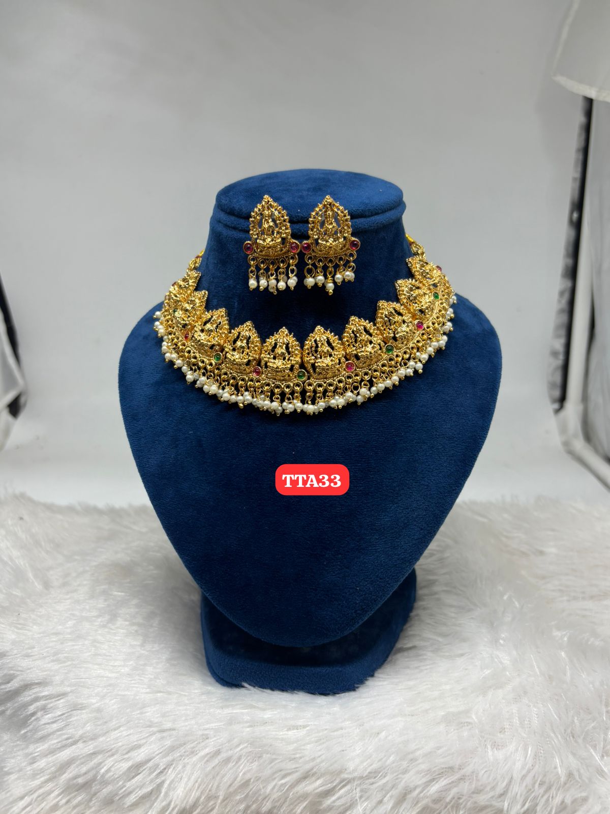 Premium quality one gram gold 28″ big stone necklace with ear rings