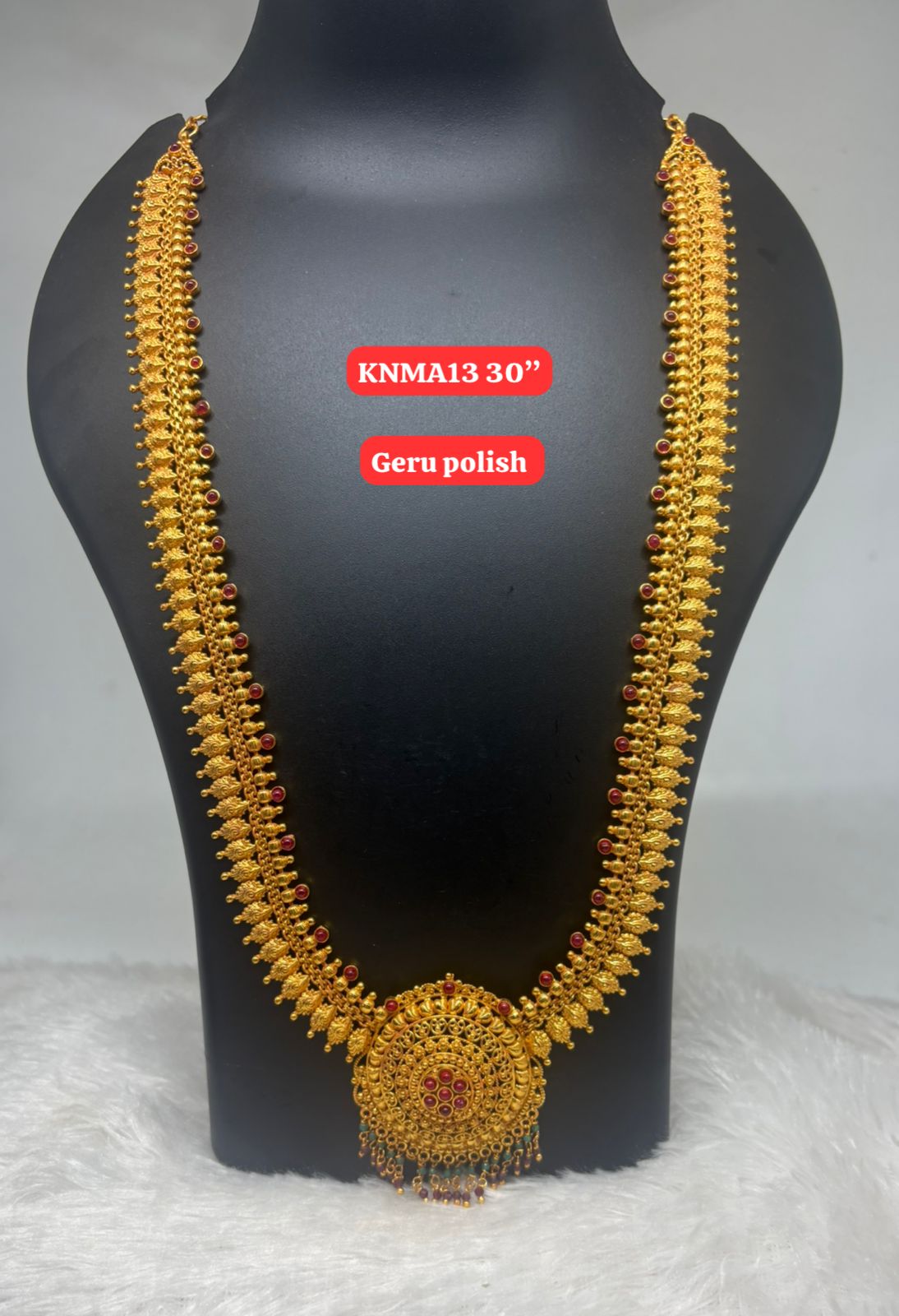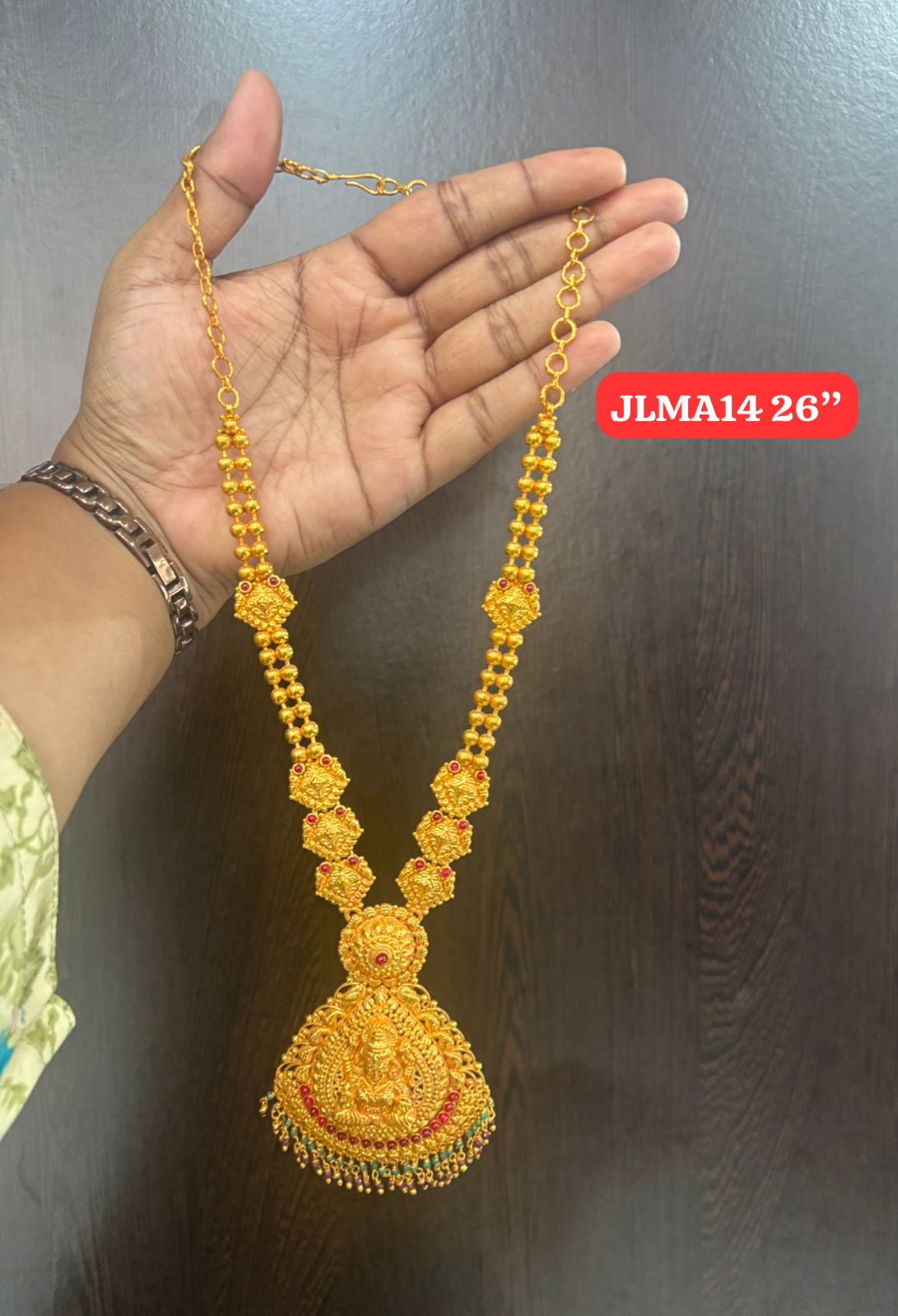Premium quality one gram gold geru finish 26” long laxmi necklace