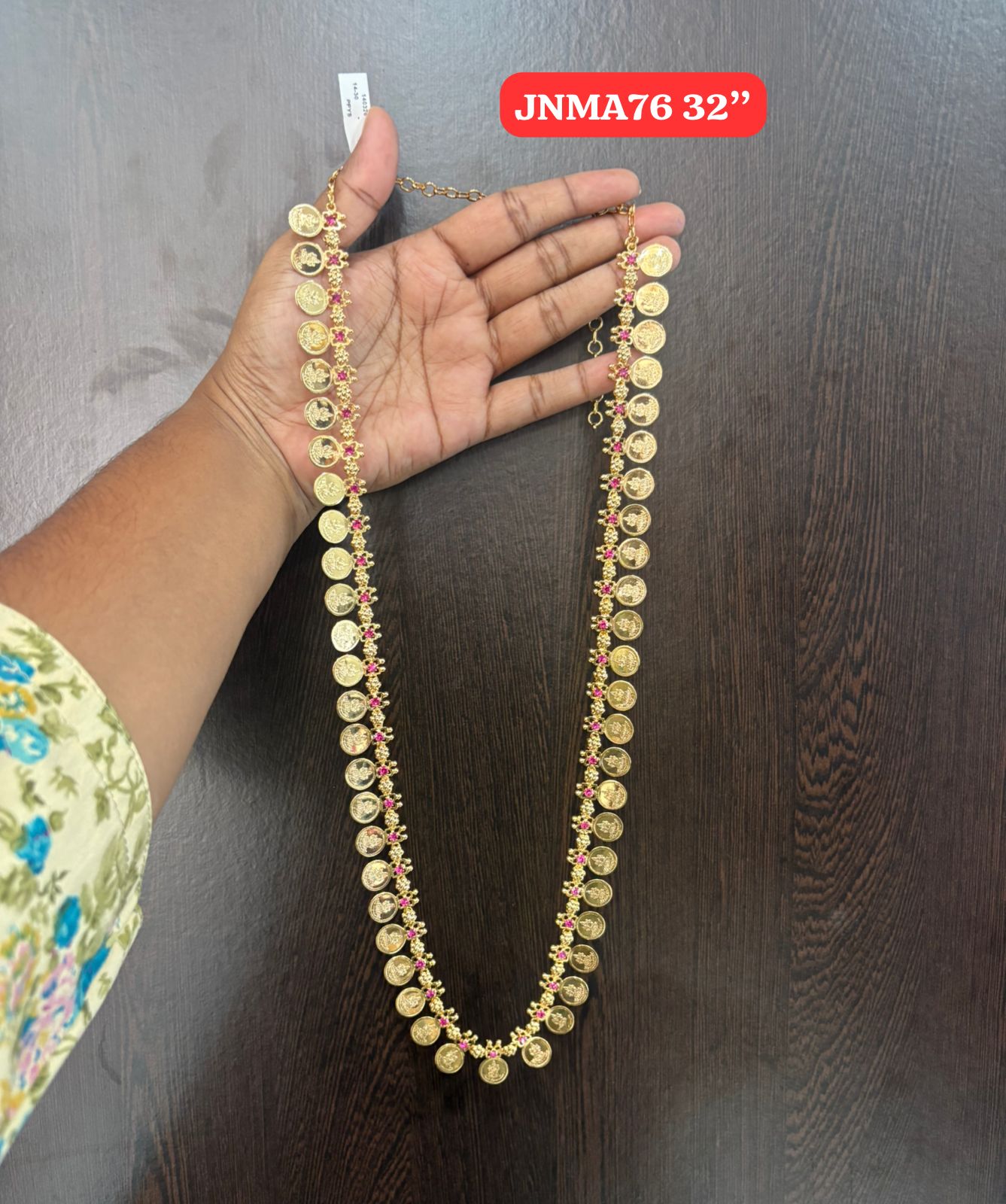 Premium quality One gram gold Long 32″ coin necklace with Ruby stone work