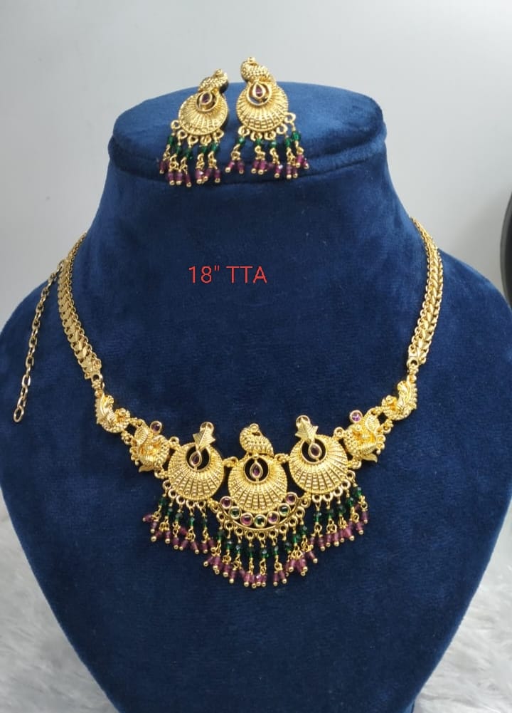 Premium quality one gram gold Peocock necklace with matching Ear rings(Push back)